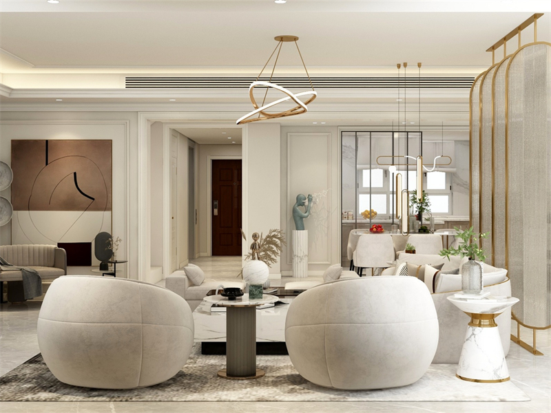 本案以现代简约风格为内核,从餐厅的实用饮食场、客厅的松弛社交域,到卧室的慵懒休憩区,均在简约中融入精致细节,既满足多元生活需求,又以冷静色彩与柔和质感,诠释出“干练与温度共生”的现代简约居家美学。