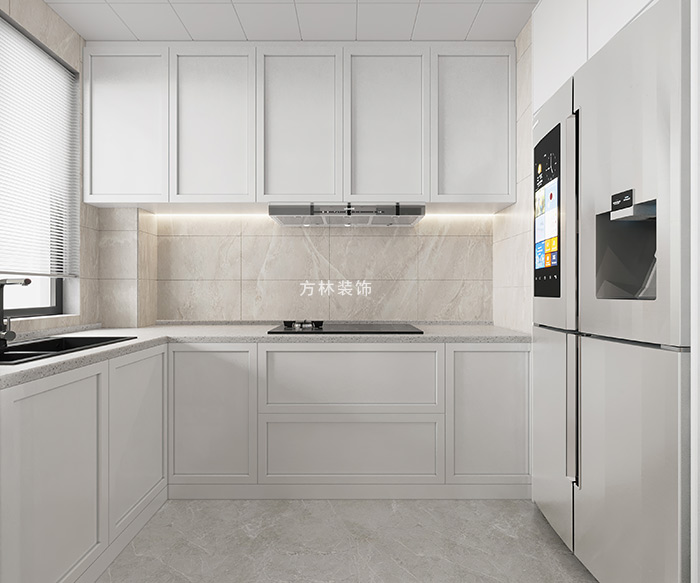 厨房区域水汽油烟较多,因此需要设计吊顶避免顶面受潮。常用的厨房吊顶材料有石膏板、铝扣板和桑拿板,其中,铝扣板凭借优秀的防潮性能成为大多数家庭的选择。