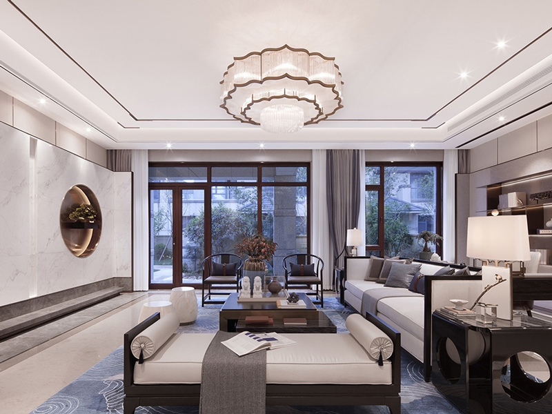 本案定位于新中式风格,从客厅的社交互动、茶室的品茗文化,到卧室的静谧休憩、衣帽间的精致收纳,均在现代材质中融入山水元素、木质肌理等中式细节,诠释传统底蕴与现代生活共生的设计美学。
