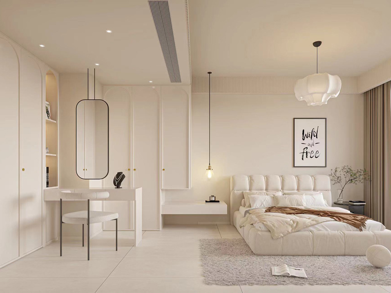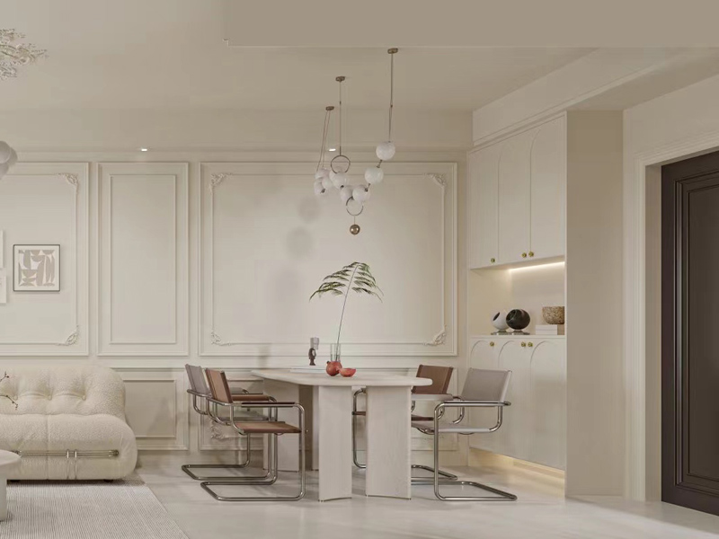 本案例风格定位于法式奶油风,温润清爽的奶白色设计,赋予空间柔和舒适的居住氛围,整体氛围和谐自然。
